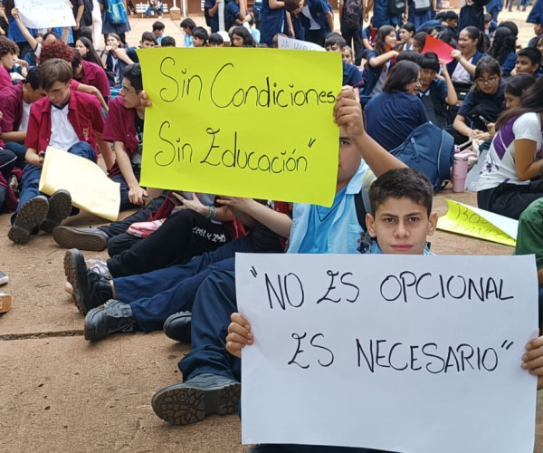 Alumnos exigen kits escolares, almuerzo, mantenimiento edilicio y servicios de apoyo, y advierten que podrían intensificar medidas si no reciben respuestas inmediatas.